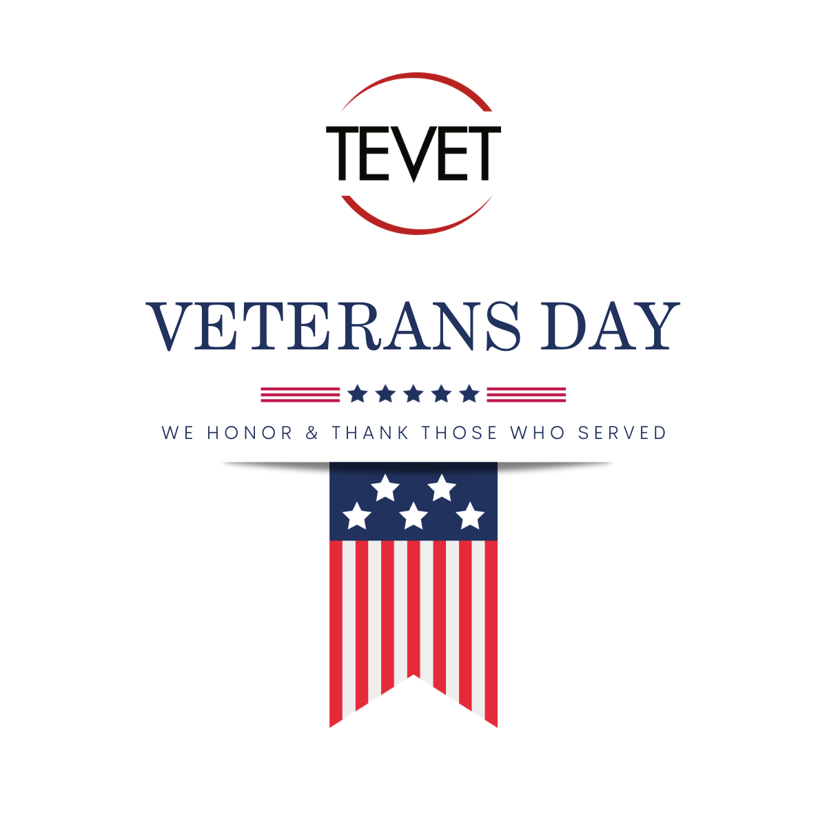 From all of us at TEVET, we wish you a heartfelt Veterans Day. May we continue to uphold the values for which our veterans have fought and continue to support them with the honor they so richly deserve.
